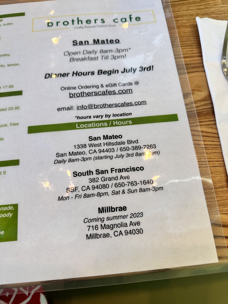 Located in the heart of San Mateo, Brothers Cafe offers an extensive menu that brings breakfast and brunch to life. From classic benedicts like the Classic with Canadian Bacon to the innovative Gilroy featuring creamed spinach and artichokes, each dish is crafted with care and flavor.